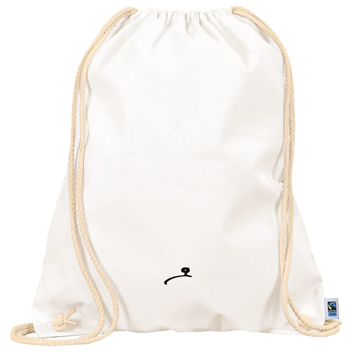 Turnbeutel aus Fairtrade-Baumwolle mit robustem Zugbändel. Aussentasche mit Reissverschluss.